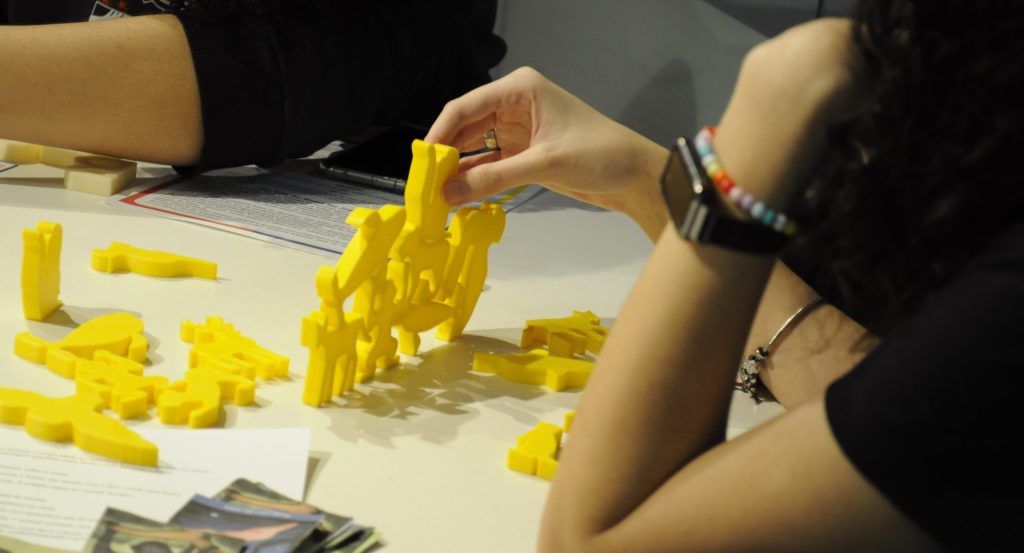 Trata-se de um jogo cognitivo que, além de promover o desenvolvimento motor por meio da manipulação das peças, estimula a atenção, a memória e o raciocínio lógico. As peças são acompanhadas por cartas ilustradas que apresentam nove animais da fauna brasileira atualmente em risco de extinção, permitindo que os participantes aprendam sobre biodiversidade de forma lúdica e interativa. Dessa forma, o jogo também contribui para a conscientização ambiental, incentivando o cuidado com a natureza e o reconhecimento da importância da preservação das espécies ameaçadas.