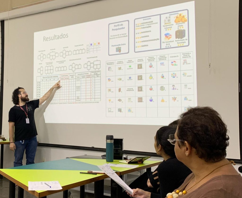 Um jogo de tabuleiro educativo e estratégico que simula os dilemas enfrentados por organizações em transição rumo a modelos mais sustentáveis, inovadores e orientados por propósito. Estruturado a partir de fundamentos teóricos como os microfundamentos da inovação e os paradoxos organizacionais, o jogo convida os participantes a tomar decisões em situações ambíguas e desafiadoras, refletindo coletivamente sobre as consequências de suas escolhas. Ao final da experiência, os jogadores são capazes de mapear seu radar estratégico de liderança e compreender melhor as tensões sistêmicas que atravessam processos de transformação, promovendo uma gestão mais integrada, reflexiva e alinhada aos desafios contemporâneos.