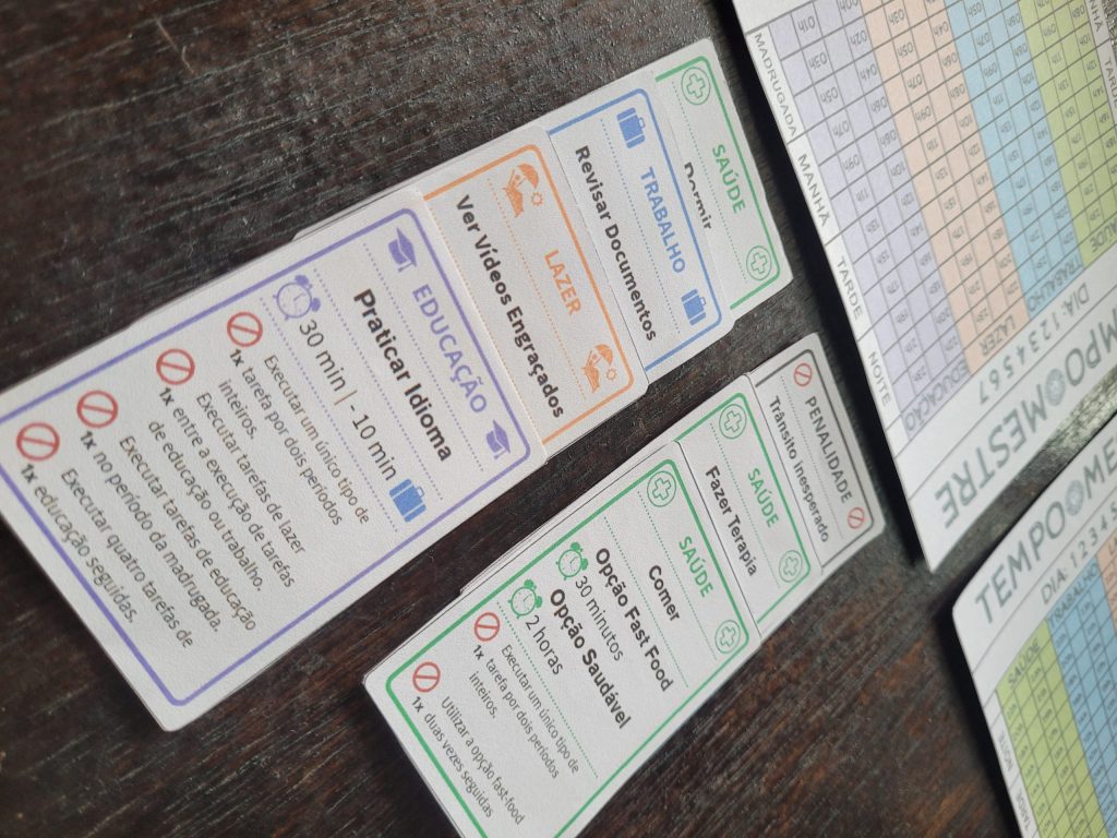 Um jogo educacional de tabuleiro cujo objetivo é contribuir no processo de ensino da gestão de tarefas e controle eficaz do tempo. Baseado no método Getting Things Done do consultor David Allen, o jogo funciona como uma ferramenta a aprimorar as habilidades dos jogadores através da realização de tarefas divididas entre as áreas Saúde, Trabalho, Lazer e Educação. A atribuição de penalidades pelo uso indevido do tempo contribui para que os jogadores percebam como escolhas inicialmente inocentes podem comprometer o rendimento de um dia inteiro.
